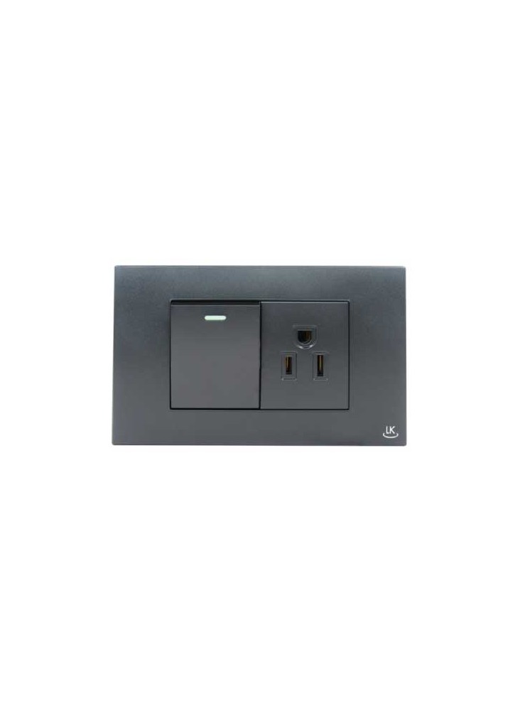 LUMEK INTERRUPTOR Y TOMA P/T NEGRO CON PLACA REF 104LUK025